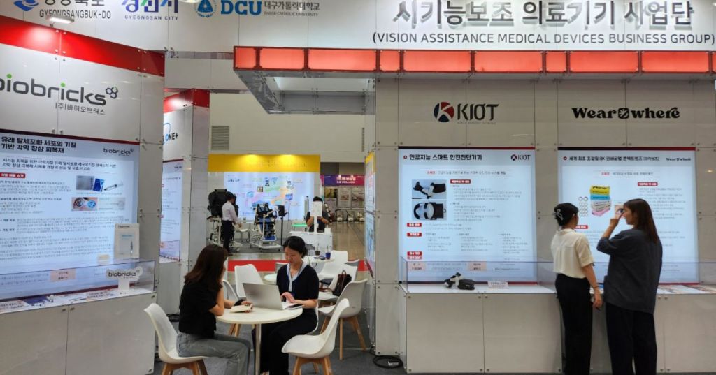 대구가톨릭대 안광학융합기술사업단이 ‘2025 메디엑스포 코리아’ 현장 부스에서 시기능 보조기기 관련 기술과 제품을 소개하고 있다.