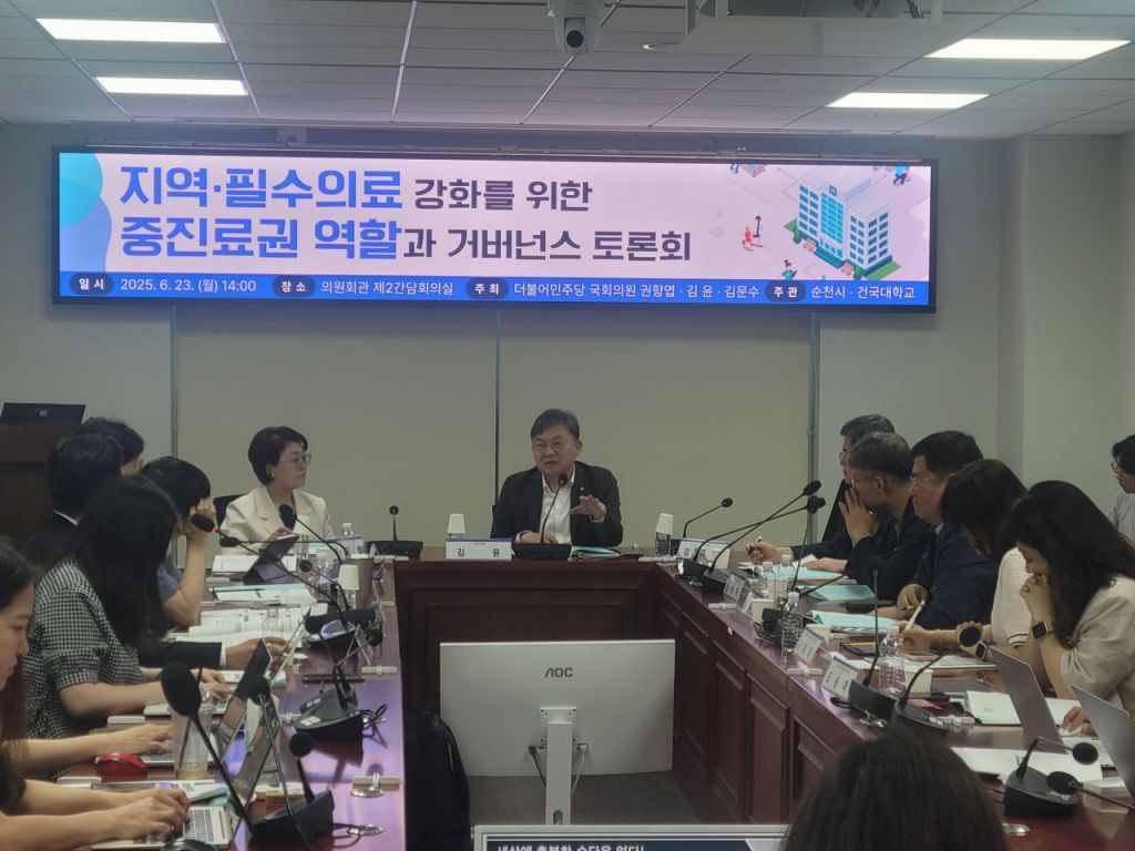 23일 국회의원회관에서 열린 '지역·필수의료 강화를 위한 중진료권 역할과 거버넌스 토론회'에서 김윤 더불어민주당 의원이 발언하고 있다. 조인경 기자