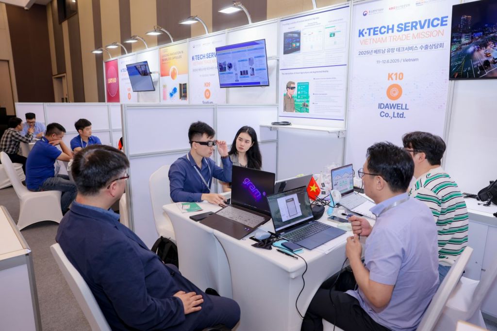 2025 베트남 유망 테크서비스 수출상담회에 참가한 국내 중소기업 관계자가 바이어와 상담을 진행하고 있다. 메인비즈협회