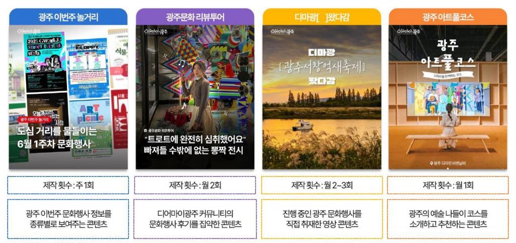 특히 신규 기획 콘텐츠인 '디마광 왔다감(문화체험 인증)', '광주 아트풀코스'(문화 나들이 추천코스)를 새롭게 선보이며, '5·18 기념행사'와 같이 시민 관심도가 높은 주제를 특화 카테고리로 구성해 주요 문화행사에 대한 접근성과 편의성을 한층 높인다. 또 이용자 성향을 분석해 관심 분야에 맞는 콘텐츠를 제공하는 알고리즘 기반의 개인화 서비스를 도입한다.