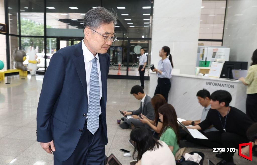 조현 외교부장관 후보자가 24일 서울 종로구 대우빌딩에 마련된 인사청문회 준비사무실로 출근하고 있다.