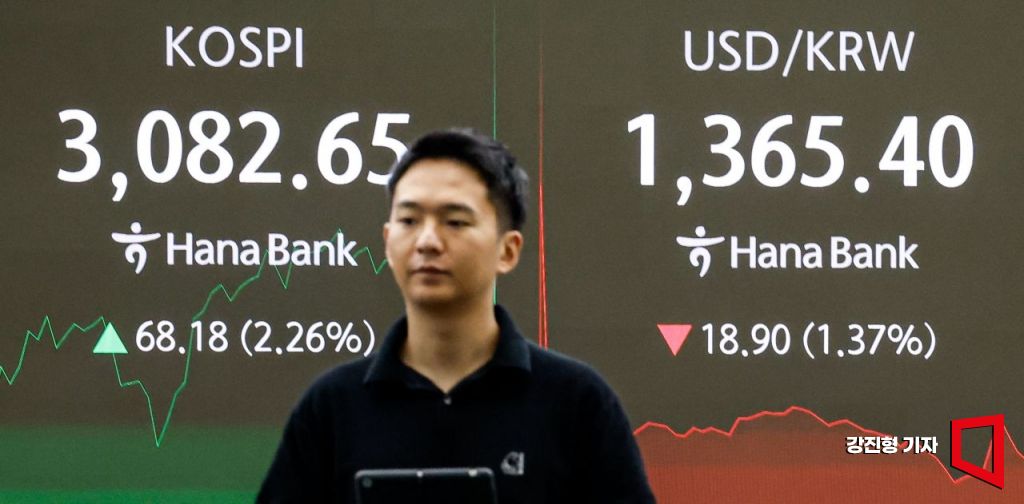 코스피가 중동 긴장 완화 영향에 2% 넘게 급등하며 3070선을 돌파한 24일 서울 중구 하나은행 본점 딜링룸에서 딜러들이 업무를 보고 있다. 2025.6.24. 강진형 기자