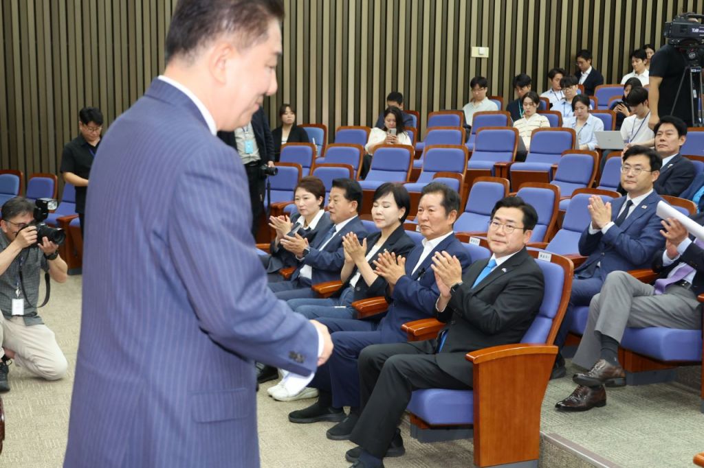 김 대행이 원내대표에 선출된 후 처음으로 열린 이날 의원총회에서는 문진석 운영수석부대표, 허영 정책수석부대표, 박상혁 소통수석부대표 등 원내수석부대표단 인준, 정부의 추경안 및 향후 국회 일정 보고 등이 이뤄졌다.