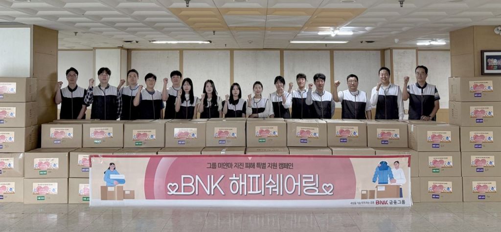 BNK금융그룹(회장 빈대인)은 24일 글로벌 사회공헌 프로젝트 '2025 BNK해피쉐어링' 행사를 개최하고 지진 피해를 본 미얀마 주민과 인근 국가 아동들을 위한 의류 기부에 나섰다.