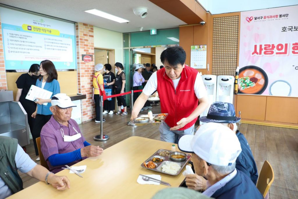 달서구노인종합복지관은 지난 17일 달서구음식과사랑봉사단과 손을 맞잡고 ´사랑의 한우국밥 & 불고기 나눔 데이′를 개최하며 지역 어르신 1200명에 감사와 존경의 마음을 전했다.