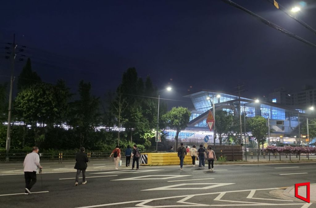 오전 4시28분. 106-1번 버스는 '도봉산역 광역환승센터'에 닿았다. 승객들은 이씨 말대로 일제히 길을 건너기 위해 뛰었다. 얼떨결에 기자도 함께 뛰었다. 우리는 건너편 '도봉산역' 정거장에서 서울 시내버스로 환승해야 한다. 100m쯤 걸어 돌아가면 횡단보도가 있지만 물리적 거리보다 바쁜 마음에 '심리적 거리'가 더 멀었다. 뜀박질을 한 기자와 다른 이들이 정거장에 도착하자마자 시내버스가 도착했다. 숨 가쁘게 뛰지 않았다면 어땠을까. 가쁜 숨을 몰아쉬던 이씨는 기자에게 "왜 도로 바깥쪽에 내려주는지 모르겠다. 사람들이 다 (환승하기 위해) 무단횡단하고 뛰어가는데 사고가 날까 두렵다"고 했다.