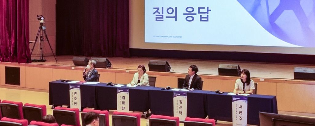 포럼에는 임태희 교육감을 비롯해 도교육청 관계자와 현장 참석 교원, 온라인으로 참여를 신청한 교원과 교육가족 등 모두 200여 명이 참여했다.