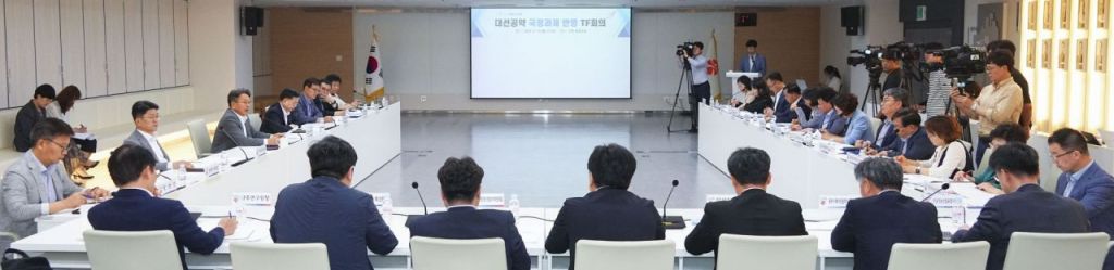강기정 광주시장이 지난 16일 오후 시청 중회의실에서 열린 '대선공약 국정과제 반영 TF 회의'에 참석, 대선공약 반영 현황을 보고받고 있다. 광주시 제공