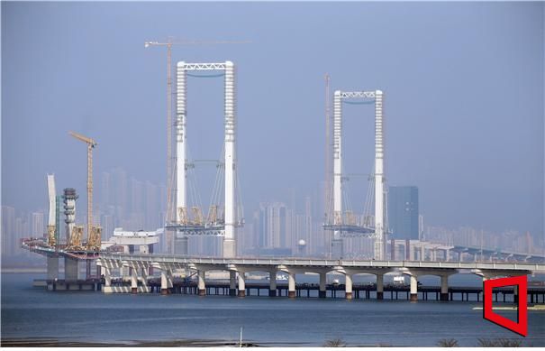 제3연륙교 건설 공사가 84%의 공정률을 보인 가운데 세계 최고 높이인 180m 주탑이 그 위용을 드러내고 있다. 인천경제자유구역청