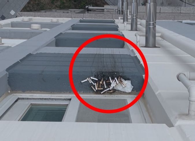 A씨는 "집안에서 피우는 것도 심한데 밖에 저렇게 꽁초를 모아둔다"며 "원래 비상구에서 흡연하던 사람이었는데, 주의받은 뒤 세탁실에서 담배를 태우는 중"이라고 했다. 그는 "아이가 있어서 조심하라는 소리를 따로 안 하고 있기는 하다"며 "엘리베이터에서 만나 담배 좀 자중해 달라고 부탁했더니 '당신네나 잘하라'라고 욕설을 했다"고 주장했다. 그러면서 "세입자인데 집주인도 관여하길 꺼리고 관리사무소에서도 해결이 안 되는 처치 곤란한 집"이라며 "민원으로 해결할 수 있는 방법이 없느냐"라며 조언을 구했다.