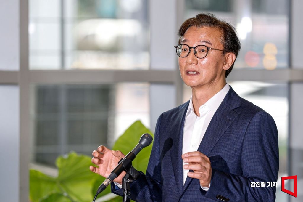 전재수 해양수산부 장관 후보자가 25일 서울 마포구 포스트타워에 마련된 인사청문 준비 사무실에 출근하며 취재진 질문에 답하고 있다. 2025.6.25. 강진형 기자