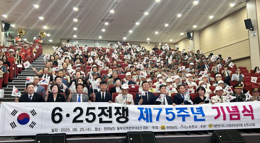 전라남도는 25일 동부지역본부에서 6·25전쟁 75주년을 맞아 기념행사를 열어 참전용사의 호국정신을 기렸다.