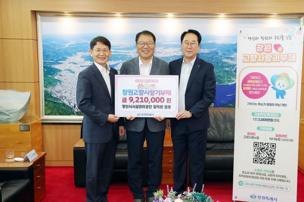 경남 창원특례시는 25일 양산시시설관리공단이 '고향사랑기부제'를 통해 2년 연속 기부금을 전달했다고 밝혔다.