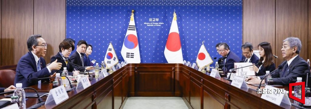 조태열 외교부 장관과 이와야 다케시 일본 외무대신이 13일 서울 종로구 외교부에서 한일외교장관회담을 하고 있다. 조용준 기자