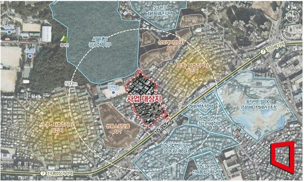 사업지는 상도로 북측에 위치하며 전체 건축물의 약 86%가 노후·불량 건축물로 주거 환경 개선이 시급한 지역이다. 사업지와 인접한 상도로 남측 일대는 대규모 개발사업이 활발히 진행되고 있지만, 해당 지역은 상대적으로 개발이 더뎌 주거지 노후화가 가속화되고 있다.