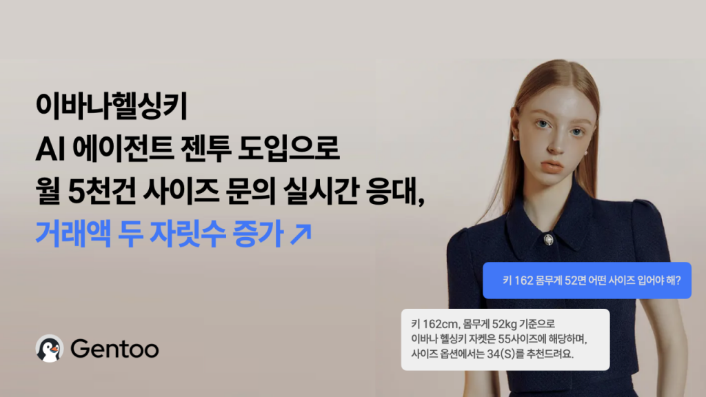이를 통해 이바나헬싱키는 젠투 도입 이후 거래액이 두 자릿수 이상 증가하는 성과를 거뒀다. 월 5000건 이상의 사이즈 문의를 실시간 처리, 고객 응대 효율 향상 및 인건비 절감 효과도 확인했다.