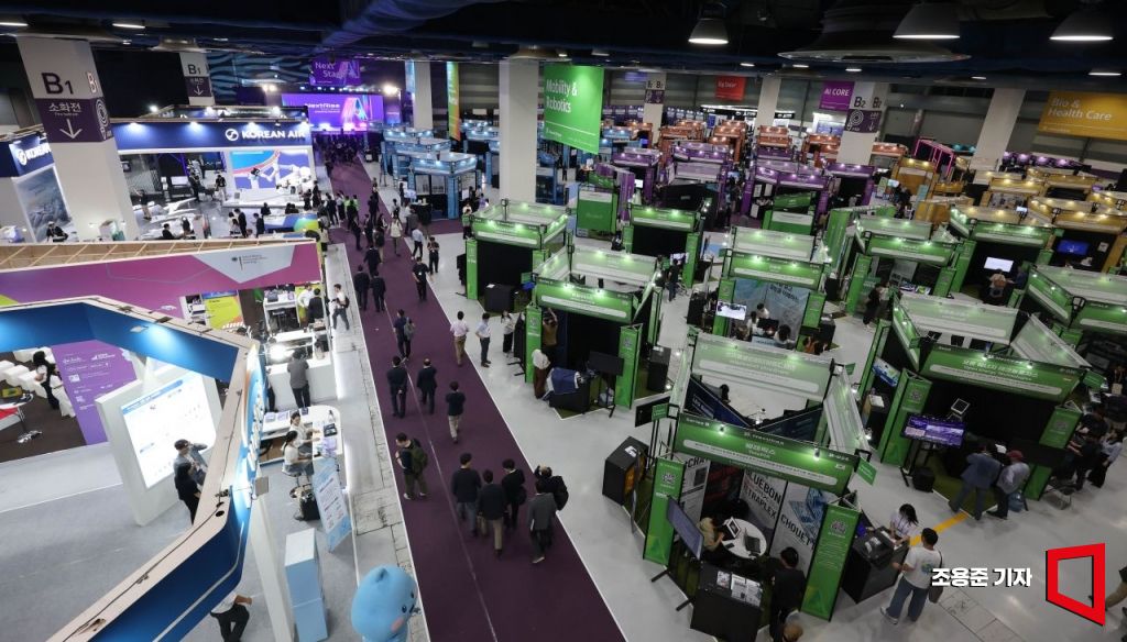26일 서울 강남구 삼성동 코엑스에서 열린 '넥스트라이즈(NextRise) 2025 서울' 박람회를 찾은 관람객들이 참가업체 부스를 둘러보고 있다. 올해 7회를 맞은 국내 최대 규모 스타트업 행사인 넥스트라이즈는 국내외 스타트업 1천600여 곳과 대기업, 중견기업, 벤처캐피탈(VC) 250여 곳이 참가해 역대 최대 규모로 진행된다.