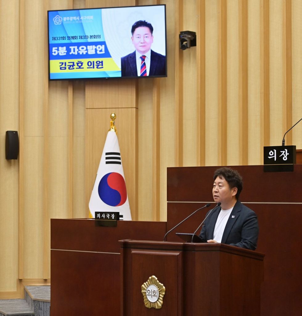 광주 서구의회 김균호 의원(기획총무위원장)이 지난 25일 제331회 제1차 정례회 제3차 본회의에서 5분 자유발언을 통해 당직 및 업무 대행 수당제도 개선의 필요성을 제기하며, 용기 있는 적극 행정 공무원을 격려·보호하는 조직문화의 중요성을 강조했다.