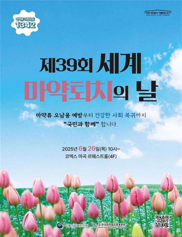 식품의약품안전처는 26일 서울 강서구 코엑스마곡 컨벤션센터에서 '마약류 오남용 예방부터 건강한 사회복귀까지 국민과 함께합니다'를 주제로 '제39회 세계마약퇴치의 날 기념식'을 가졌다.