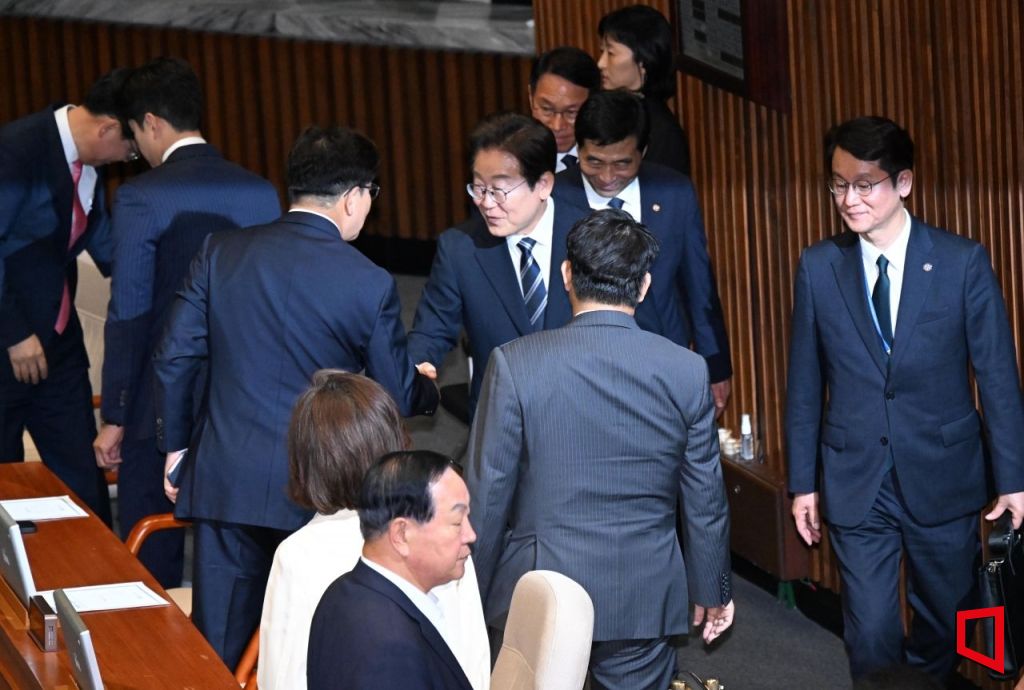이날 이 대통령은 시정연설 과정에서 야당 의원석에 시선을 두며 협치 의지를 밝히기도 했다. 예산 내역을 소개하는 과정에서도 야당 의원들을 향해 "정부 추경안에 담지 못한 내용이 있다면 국회 심의과정에서 의견을 내달라"며 "삭감에 주력하겠지만 필요한 예산항목이 있다면 말해달라"고 언급하기도 했다.