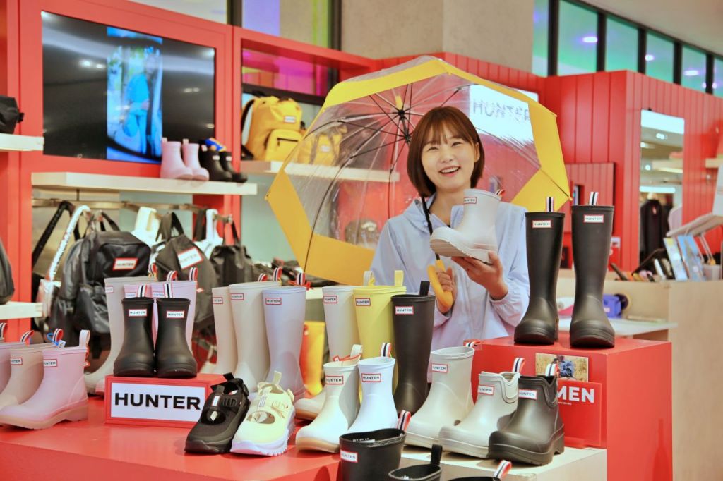광주신세계 플레이스팟에 위치한 '헌터(HUNTER)'는 영국 부츠 브랜드로 레인부츠부터 우산, 의류, 가방 등 다양한 액세서리도 함께 판매하고 있다.