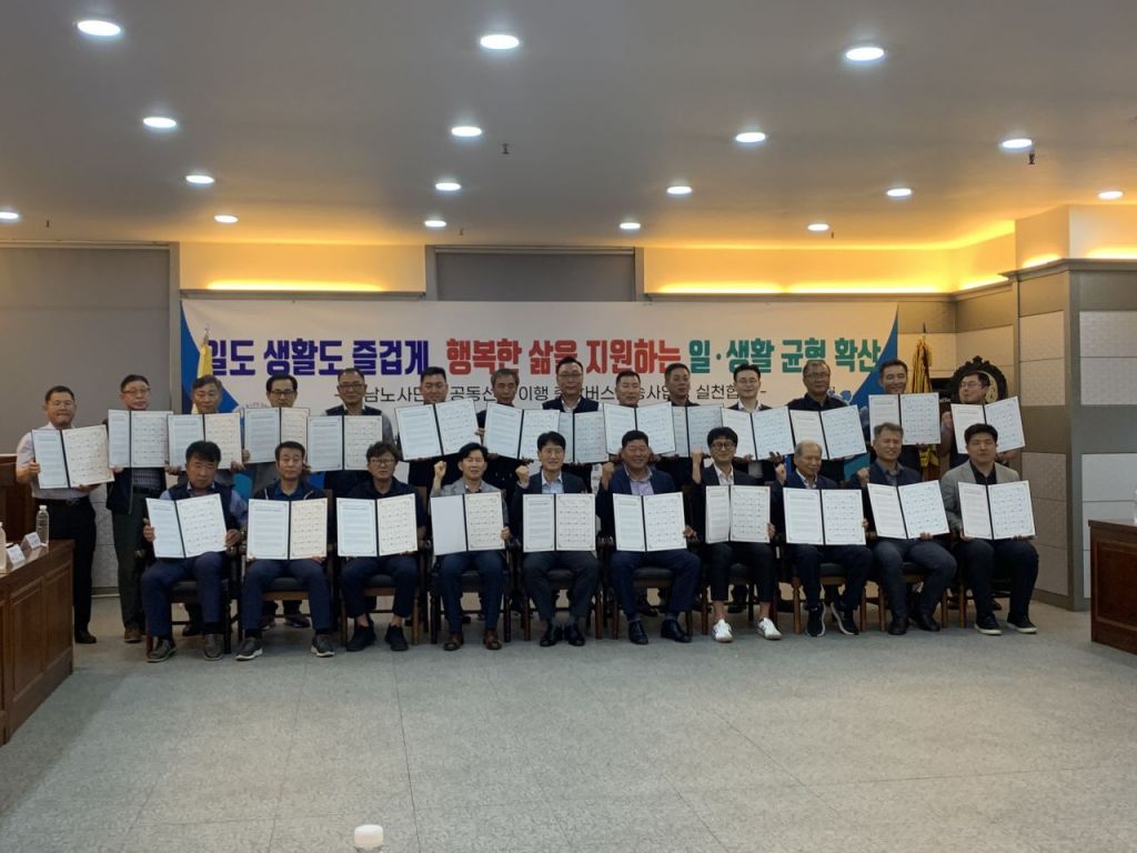 충남도는 지난 25일 도내 버스운송사업 15개 사업장이 충남노사민정공동선언의 구체적인 이행을 위해 실천협약을 체결했다고 26일 밝혔다.