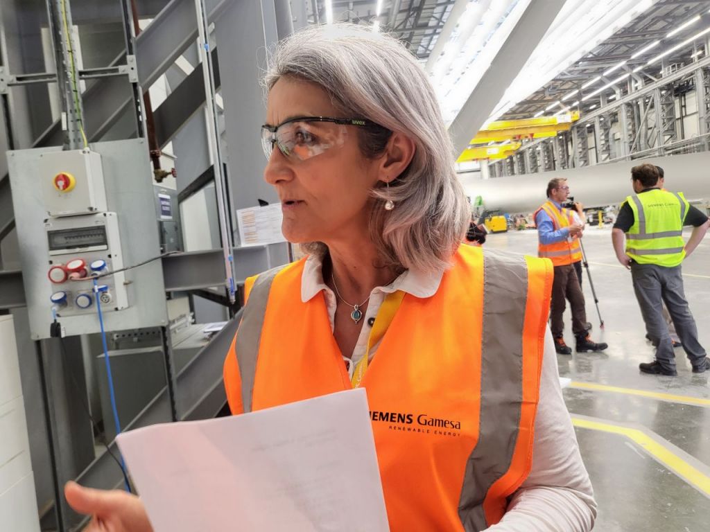 다이애나 테일러 퓨처 험버 대표이사는 지난달 10일 영국 요크셔주 헐에 위치한 터빈 블레이드 제조사 지멘스 에너지 공장에서 인터뷰를 하고 있다. 이현주 기자