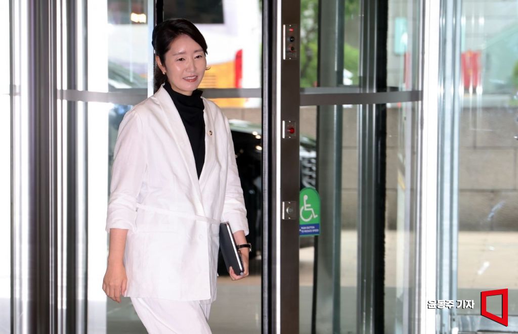 강선우 여성가족부 장관 후보자가 26일 인사청문회 준비를 위해 서울 종로구 이마빌딩에 마련된 청문회 준비 사무실로 출근하고 있다. 2025.06.26 윤동주 기자