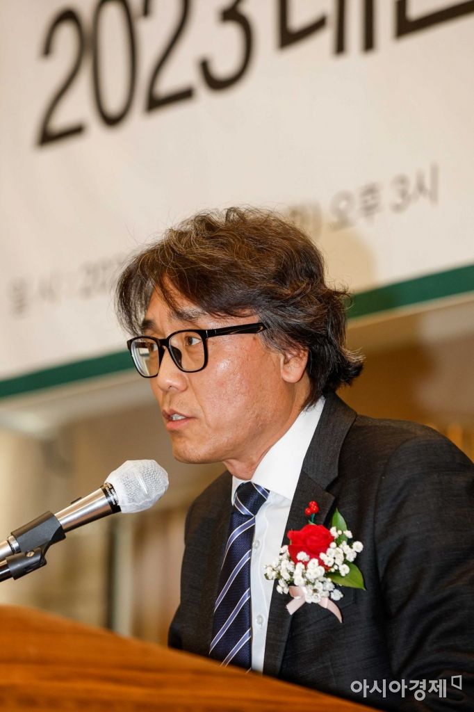 금한승 환경부 기후탄소정책실장이 31일 서울 중구 프레스센터에서 열린 '2023 대한민국 그린 모빌리티 어워드 시상식'에 참석해 축사하고 있다. 사진=강진형 기자aymsdream@