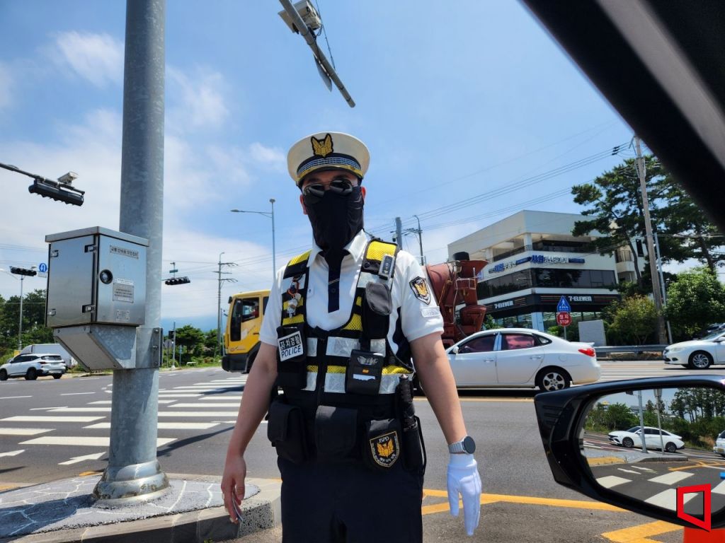 지난 26일 오후 제주시의 한 도로에서 제주자치경찰단이 교통법규 위반 단속을 벌였다. 이날 현장에는 순찰차와 함께 여러 명의 경찰관들이 배치됐고, 주로 안전띠 미착용 운전자를 대상으로 집중 단속이 이뤄졌다.
