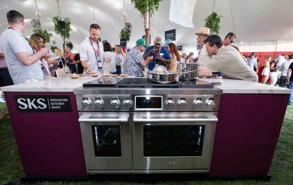 LG전자의 초프리미엄 빌트인 가전 브랜드 'SKS'가 현지시각 20일부터 3일간 미국 아스펜에서 열린 '푸드앤와인클래식'에 공식 후원사로 참여했다. 사진은 SKS 부스에 가스레인지, 인덕션, 수비드 기능을 모두 탑재한 '프로레인지'가 전시된 모습. 사진=LG전자