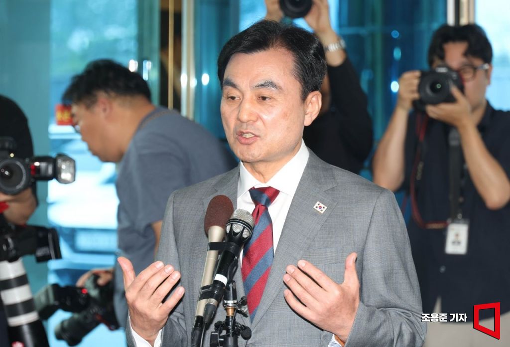 안규백 국방부장관 후보자가 27일 서울 용산구 육군회관에 마련된 인사청문회 준비 사무실로 첫 출근하며 취재진의 질문에 답하고 있다.