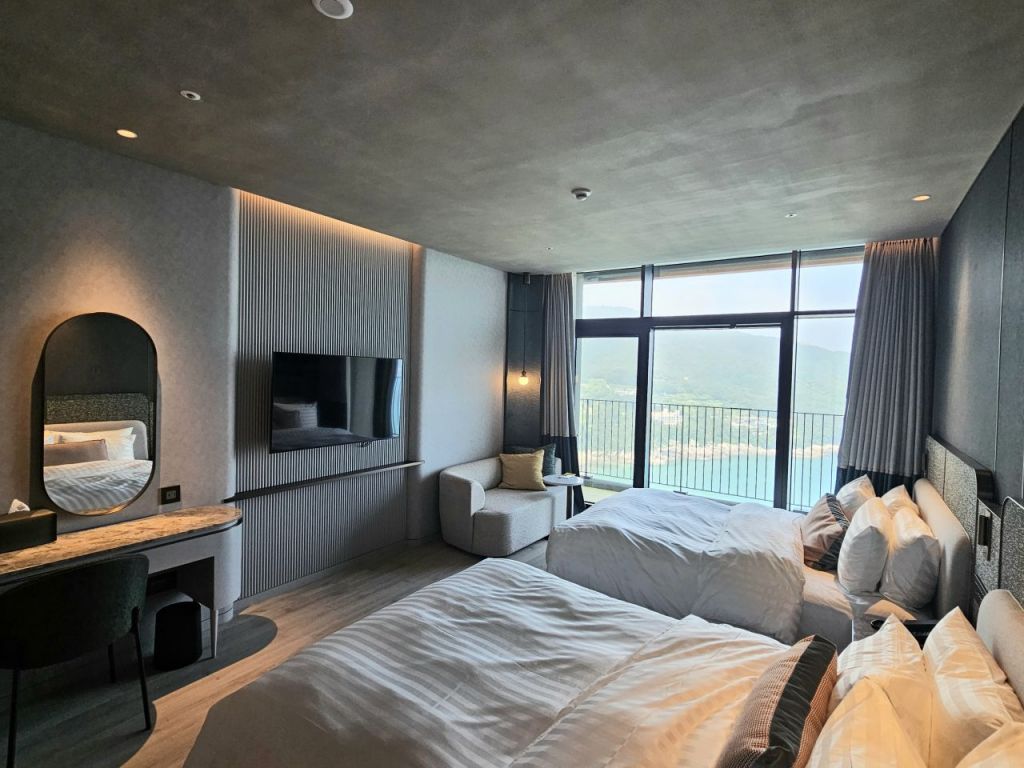 쏠비치 남해는 호텔 366실과 빌라 85실 등 총 451실 규모다. 객실 크기는 30.24㎡(약 9평)부터 113.05㎡(약 34평)까지 다양하다. 4인 정원인 디럭스 오션뷰 객실에 들어서자 창밖으로 탁 트인 남해가 눈에 띄었다. 객실 외부에는 널찍한 테라스가 있어 자연경관을 감상하기 좋다.