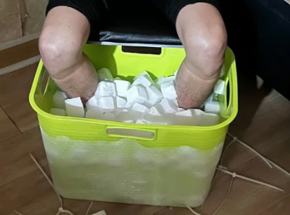 대만의 한 남성이 고액의 보험금을 받아내고자 10시간 동안 드라이아이스에 발을 넣었다. 사진은 범행 당시 촬영한 사진. SCMP