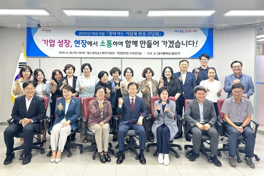 대구 달서구(구청장 이태훈)는 지난 26일 대구경북지방중소벤처기업청에서 '2025년 여성기업 찾아가는 기업체 현장간담회'를 개최했다.