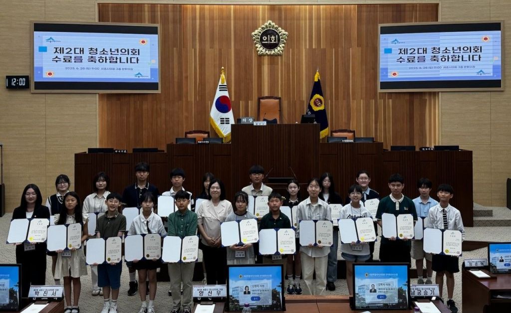 세종시는 의회 본회의장에서 28일 열린 청소년의회 본회의 및 수료식을 끝으로 제2대 청소년의회 활동이 마무리됐다고 29일 밝혔다.