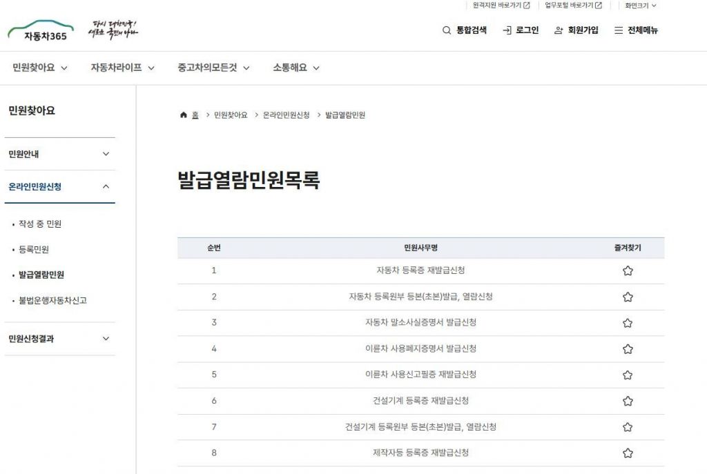 이 시스템은 기존 '자동차365'와 대국민포털에서 제공하던 민원 서비스를 '자동차365'로 일원화한 게 특징이다. 자동차 등록원부 발급·열람 등이 가능하다. 자동차 통합이력 조회 수수료와 등록증 재발급 수수료를 폐지, 국민 부담을 낮췄다.