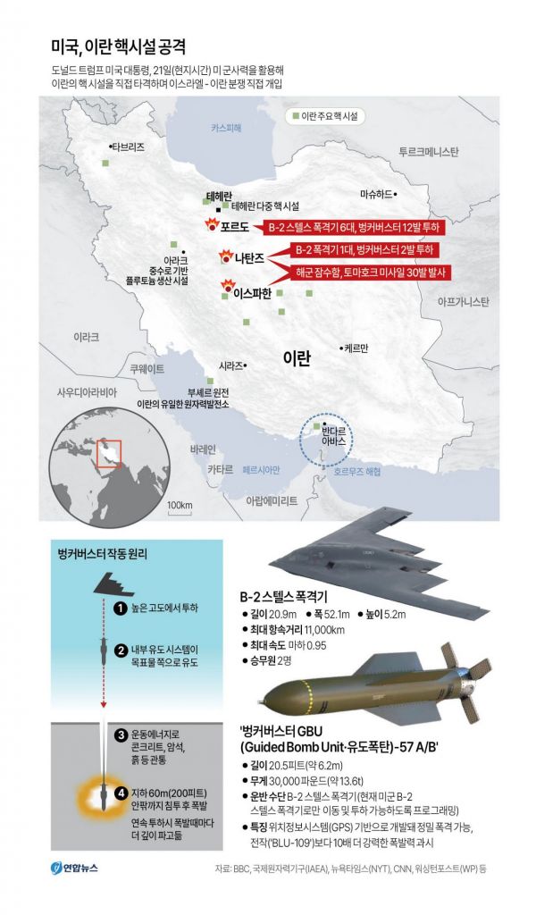 라파엘 그로시 국제원자력기구(IAEA) 사무총장이 핵시설 손상에도 이란이 수개월 내로 농축 우라늄 생산을 재개할 수 있을 것으로 예상했다. 도널드 트럼프 미국 대통령이 주장한 '핵무기의 완전한 파괴'와는 달리 실제로는 이란 핵 프로그램이 완전히 제거되지 않았음을 시사하는 대목이다. 이튿날 트럼프 대통령은 이란이 핵무기 제조에 필요한 농축 우라늄을 옮겼을 가능성을 일축했다.