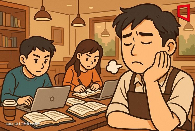 카페에 노트북은 물론 모니터, 칸막이까지 설치해 개인 공간처럼 사용하는 이른바 '카페 빌런' 사례가 빈번한 가운데, 경기 침체로 인해 카페 점주의 불만의 목소리가 커지고 있다. 특히, 최근 한 커피전문점에서 한 손님이 장시간 자리를 비운 채 테이블에 각종 장비를 펼쳐놓은 모습이 온라인 커뮤니티 등을 통해 퍼지면서 '카공족'에 대한 규제 필요성이 다시 제기됐다.