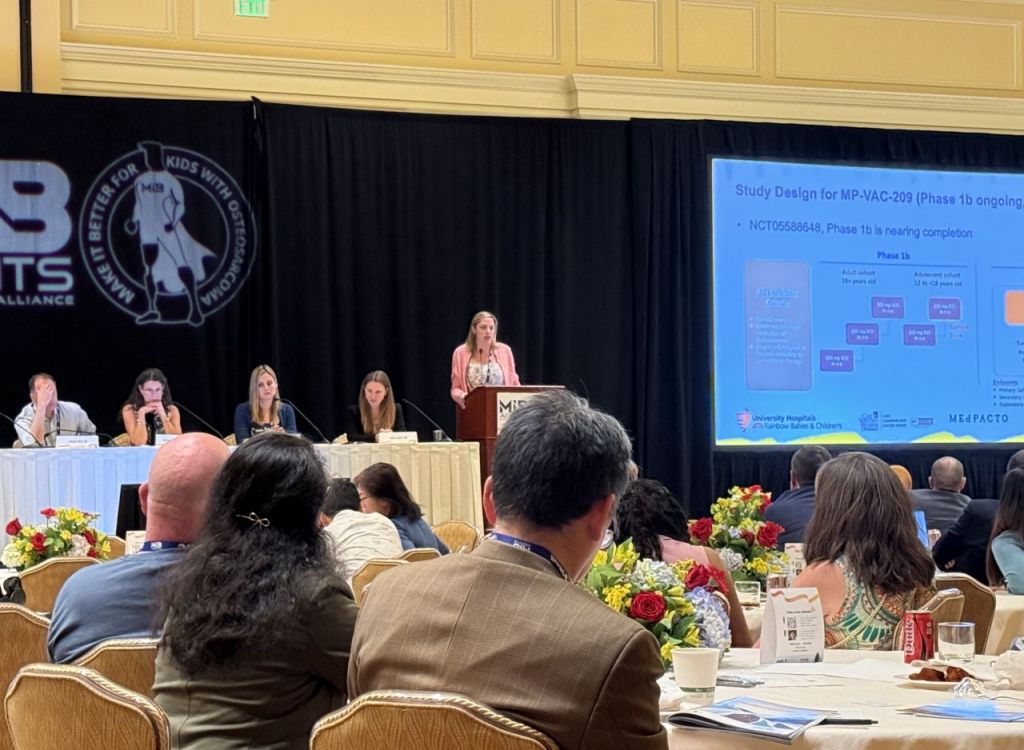 김새롬 메드팩토 미국법인장과 공동 연구자인 알렉스 후앙(Alex Y. Huang)미국 케이스웨스턴리저브대학 교수와 크리스틴 반헤이스트(Dr. Kristen Vanheyst) 레인보우어린이병원(UH Rainbow Babies and Children's Hospital) 전문의가 참석했다. 임상 중간 데이터를 공개하고 골육종 환자에서 종양미세환경에 작용하는 TGF-β(베타) 수치 감소가 종양 반응률에 큰 영향을 미친다는 연구 결과를 발표했다.