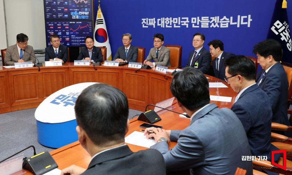 진성준 더불어민주당 정책위의장이 30일 국회에서 상법 개정안 추진 관련 경제계 의견 수렴을 위한 경제6단체 부회장단과 간담회를 하고 있다. 이번 간담회에는 박일준 대한상공회의소 상근부회장, 김창범 한국경제인협회 상근부회장, 이동근 한국경영자총협회 상근부회장, 장석민 한국무역협회 전무, 오기웅 중소기업중앙회 상근부회장, 이호준 한국중견기업연합회 상근부회장, 정우영 한국상장사협회 부회장 등이 참석했다.