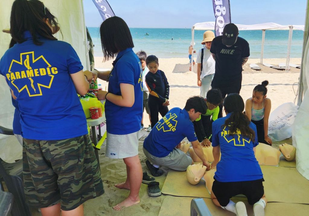 이날 학생들은 1급 응급구조사와 함께 대회 현장에서 발생할 수 있는 응급상황에 대비해 의료지원을 제공하고 CPR 교육 부스를 운영해 시민들이 직접 심폐소생술을 체험할 수 있도록 도왔다. 특히 해변을 찾은 시민과 관광객을 대상으로 응급처치의 중요성을 알리는 데 주력하며 실질적인 체험 기회를 제공했다.