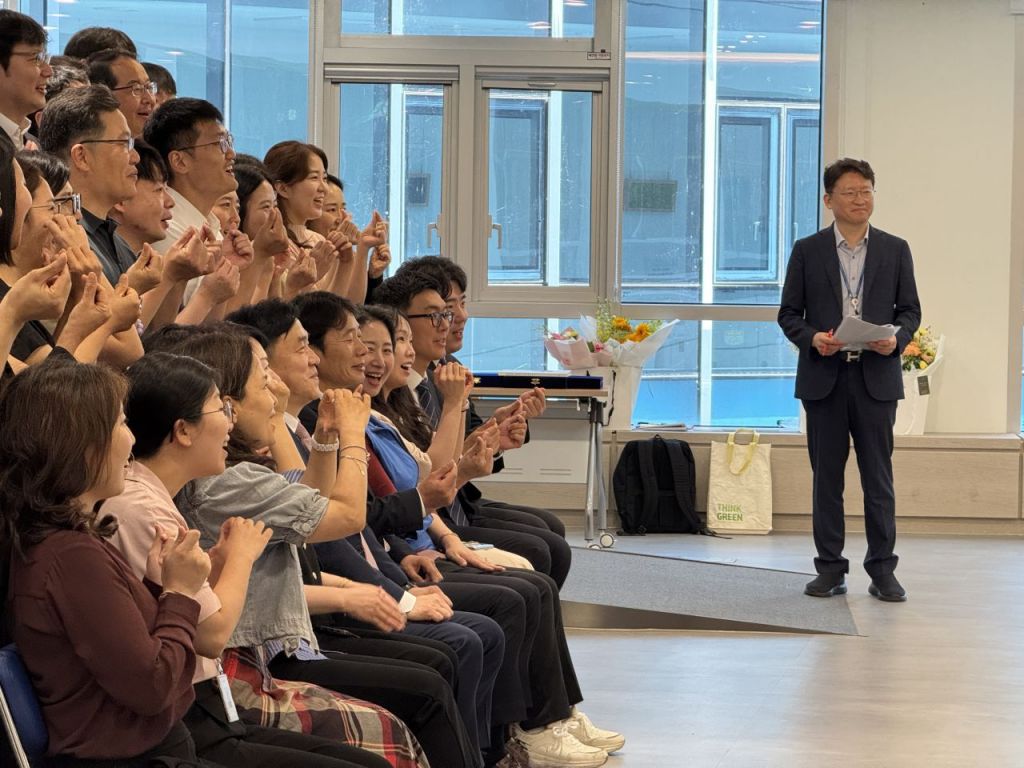 강도현 전 과기정통부 2차관(아래줄 왼쪽에서 네번째)이 30일 세종시 청사에서 열린 퇴임식에서 후배 직원들과 함께 기념촬영을 하고 있다. 사진=백종민 테크 스페셜리스트