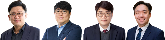 (왼쪽부터) 강현욱 교수 (연구책임자, 전남대학교 기계공학부), 한승회 교수 (공동연구원, 전남대학교 기계공학부), 홍구택 교수 (공동연구원, 전남대학교 기계공학부), 정지훈 교수 (공동연구원, Texas A&M University).