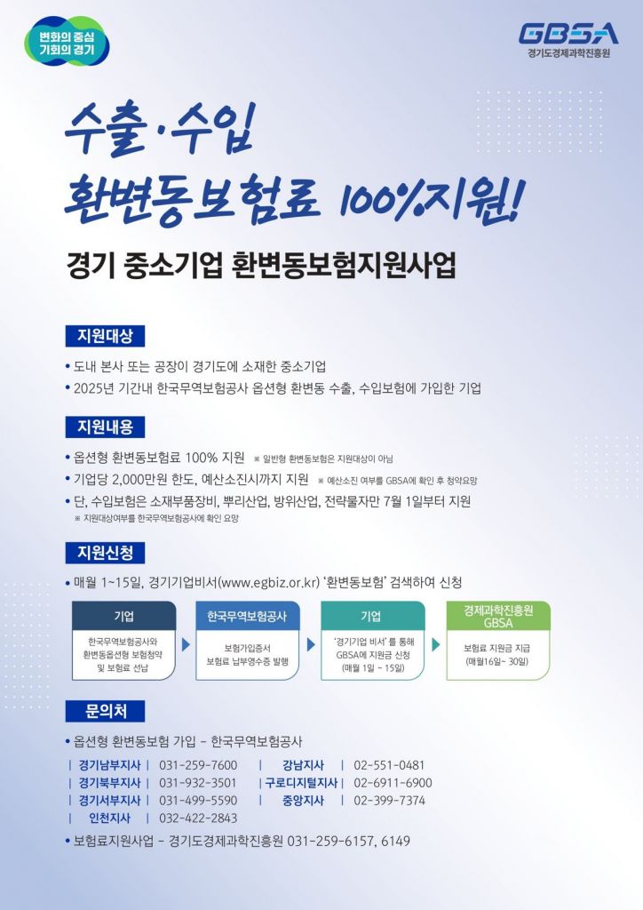 경기도가 7월 1일부터 '경기 중소기업 환변동보험 지원사업'의 대상을 수입 중소기업까지 확대 시행한다.