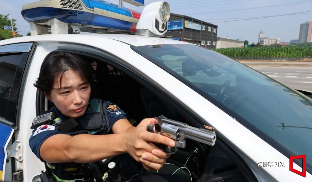 여주경찰서 오학파출소에서 근무중인 전민선 순경이 긴급출동 신고를 받고 출동하고 있다. 윤동주 기자