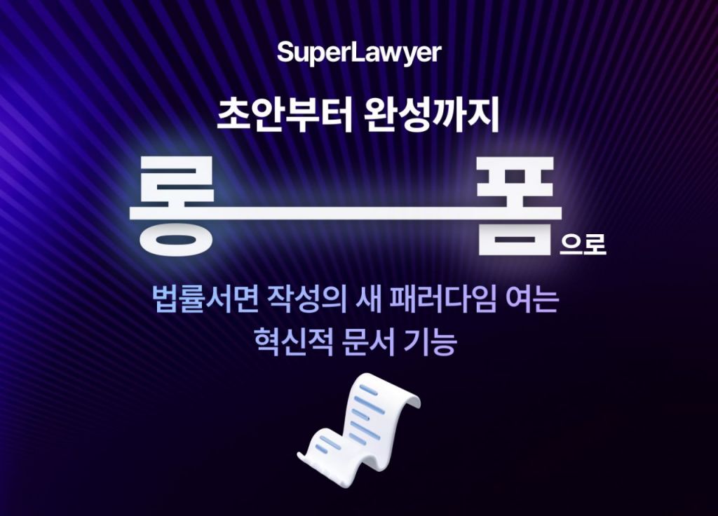 로앤컴퍼니는 법률 인공지능(AI) 서비스 '슈퍼로이어'의 새로운 기능인 '롱폼'을 출시했다고 1일 밝혔다.