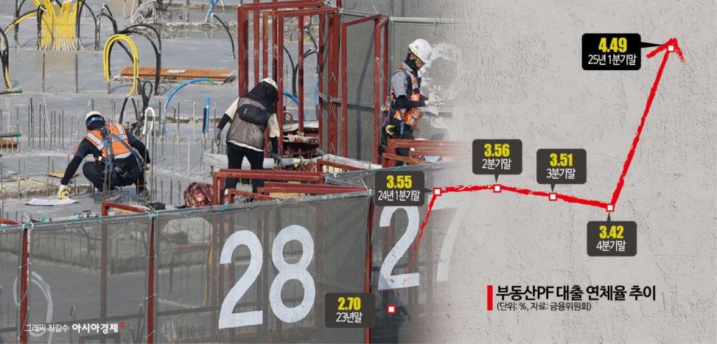금융위원회와 금융감독원, 기획재정부 등 관계기관은 1일 오전 서울 중구 은행연합회에서 '부동산 PF 상황 점검회의'를 열고 지난 1분기 말 기준 국내 금융권의 PF 대출 연체율이 4.49%로 전 분기 대비 1.07%포인트 상승했다고 밝혔다. 금융권의 PF 대출 연체율은 2023년 말 2.7%에서 작년 말 3.42%로 올랐고, 올해 1분기 처음으로 4%를 넘겼다.