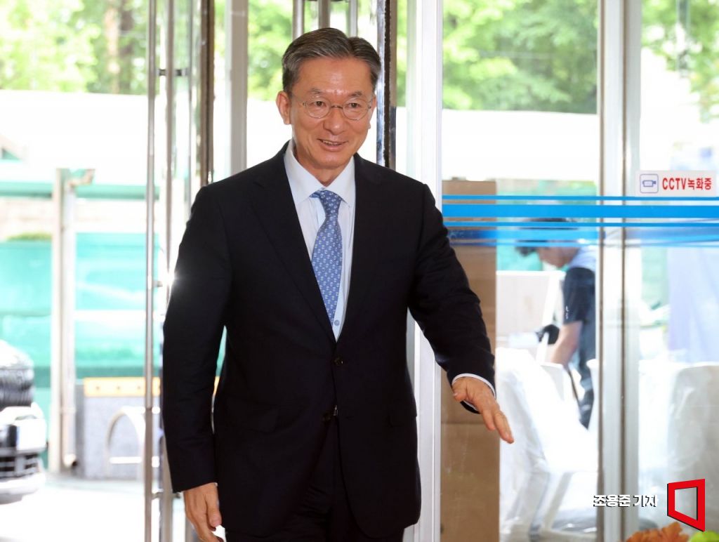 정성호 법무부 장관 후보자가 1일 서울 종로구 적선현대빌딩에 마련된 인사청문회 준비사무실로 첫 출근하고 있다.