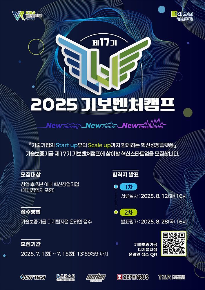 기술보증기금(기보)은 혁신 창업기업(예비창업자 포함)을 육성하기 위해 '제17기 기보벤처캠프' 참여기업을 모집한다고 1일 밝혔다.